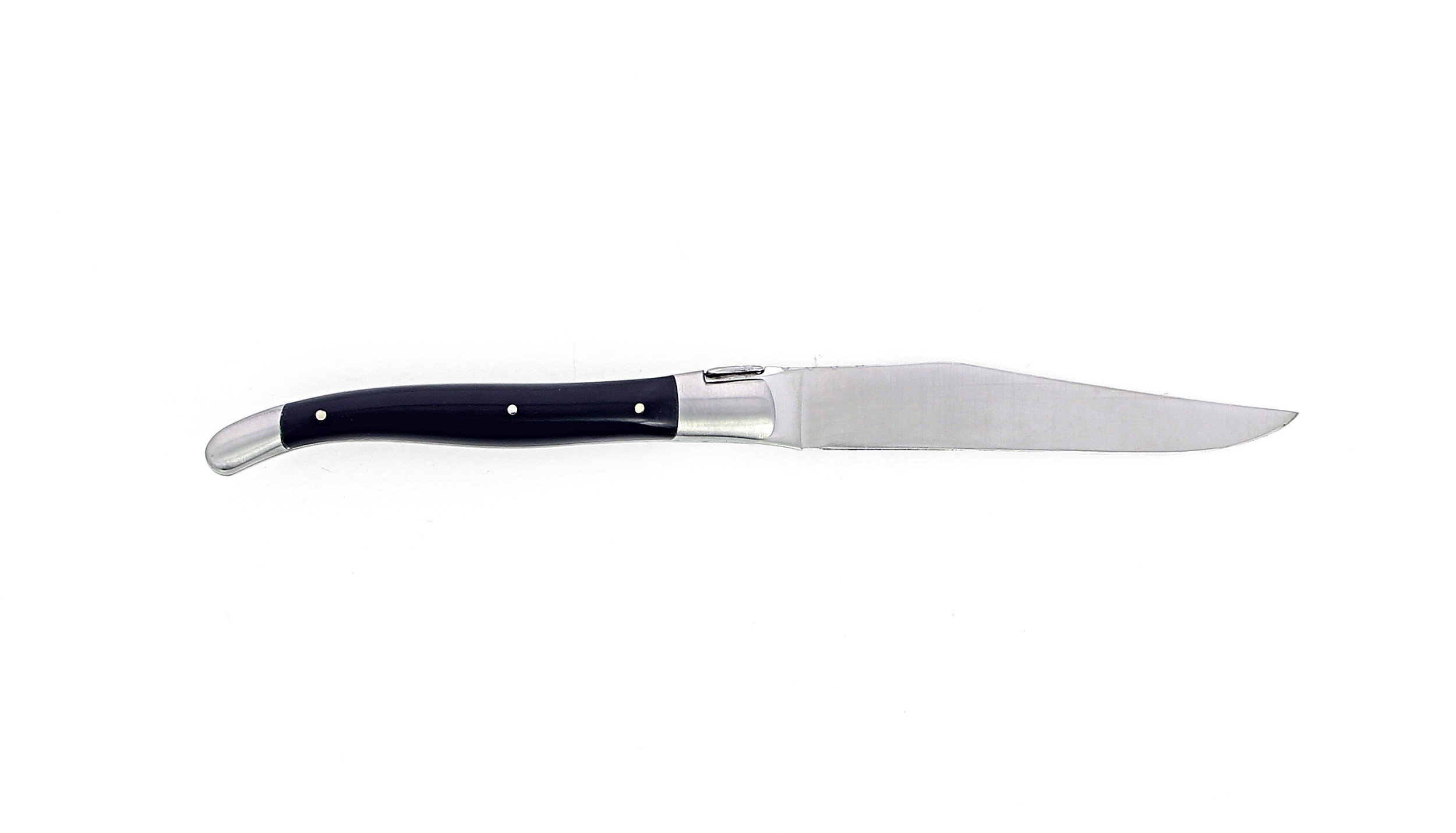 Coffret de 6 couteaux de table de Laguiole, manche en corne massive noire, mitres inox brossé