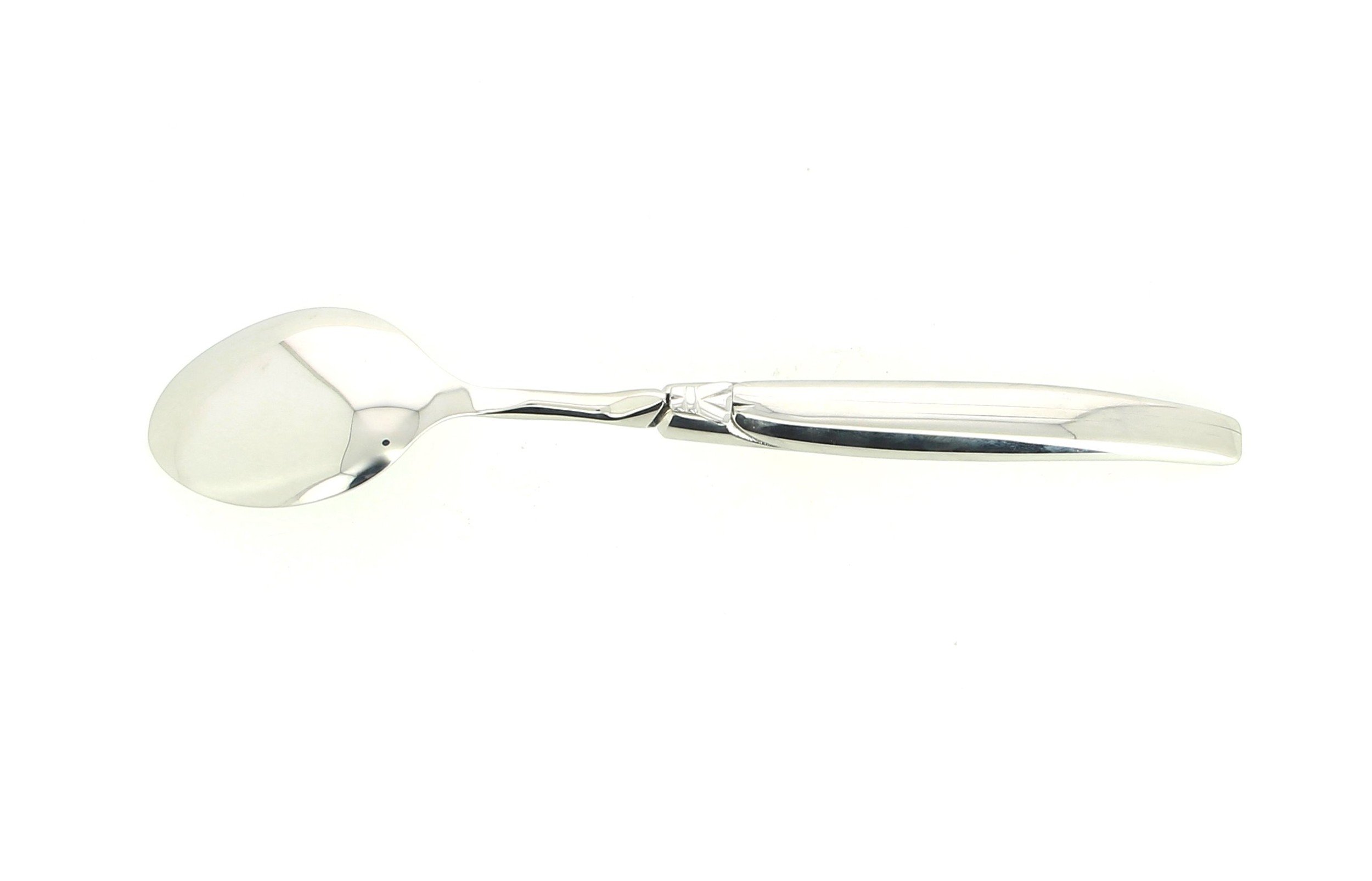 Afin d'accompagner vos couteaux de table de Laguiole, Benoit l'Artisan propose des grandes cuillères de Laguiole munies d'un manche de forme et de guillochage identiques à celui des couteaux de table pour un ensemble harmonieux et élégant. Les couverts de table Laguiole Benoit l'Artisan sont dits "pleine soie", cela signifie que la pièce de métal constituant la fourchette ou la cuillère se prolonge dans toute la longueur du manche, c'est un gage de qualité et de robustesse. Les couverts de table de Laguiole Benoit l'Artisan sont conçus à partir d'un acier inoxydable garantissant une résistance à la corrosion.