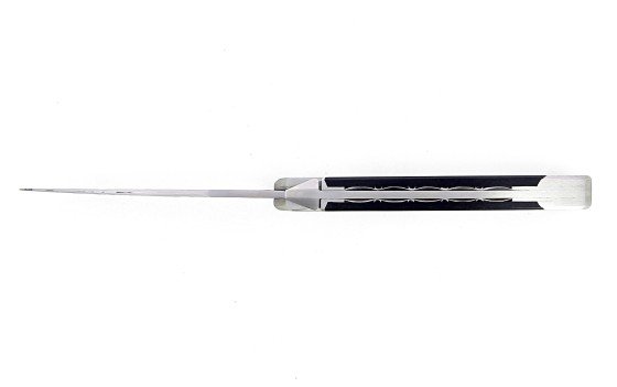 Ce couteau de Laguiole Tribal pliant est doté d'un manche de 12 cm en ébène protégé par deux mitres inox, et de platines guillochées. Le bois d'ébène est caractérisé par sa couleur noire. Son importante densité en fait un bois particulièrement résistant. Sa couleur noire contraste avec l'argenté de la croix du berger et du ressort, mettant ainsi en valeur le travail de décoration du couteau Laguiole pliant.