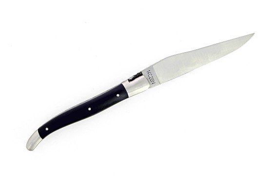 Le douze centimètres est la taille classique du manche du couteau pliant de Laguiole. Elle correspond également à celle des couteaux de table de Laguiole, permettant ainsi une prise en main confortable, idéale pour une main adulte. La lame de ce couteau de Laguiole pliant est en acier inoxydable 14C28N (Sandvik). Toutefois, si vous préférez un autre type d'acier pour la lame de votre couteau de Laguiole, vous pouvez utiliser le bouton "Personnaliser" et sélectionner la lame de votre choix.