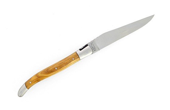 Ce couteau de Laguiole pliant est doté d'un manche de 12 cm en olivier, d'une abeille forgée et protégé par deux mitres inox. Le bois d'olivier est un bois noble, provenant du sud de la France.