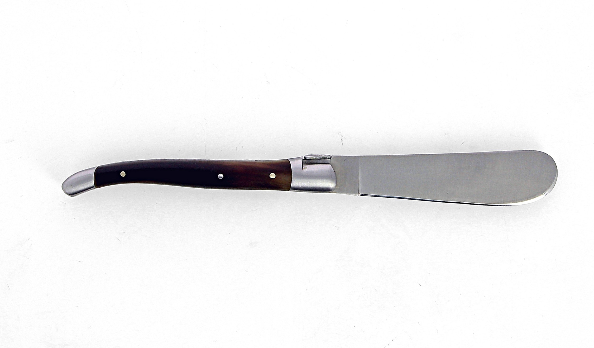 Couteau à beurre de Laguiole, manche en corne massive blonde, mitres inox brossé
