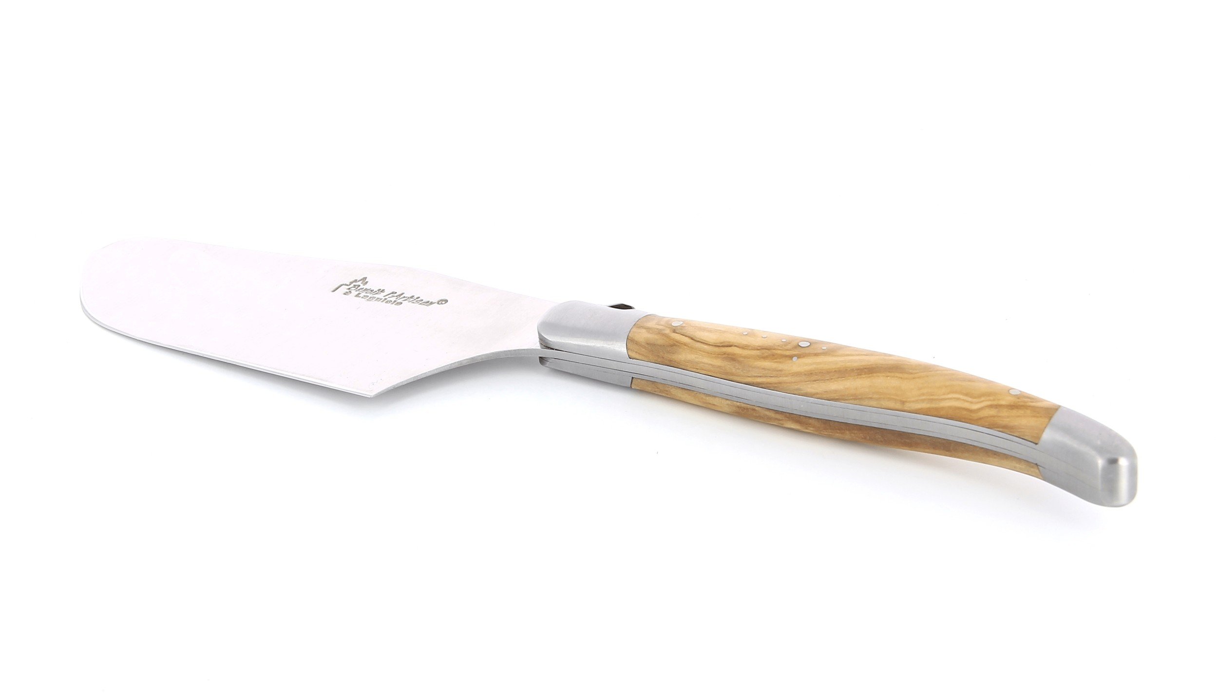Pelle à tarte de Laguiole, manche en olivier, mitres inox brossées